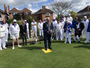 Following the opening ceremony and the fun bowls competitions we retired to the Clubhouse for the presentation of trophies for the Indoor Competitions.