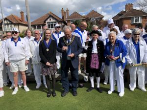 A big thank you to our Mayor and Town Crier for making the opening of the green so enjoyable. Congratulations go to Pat Cross for winning ‘The Spider.’ Photo of her receiving her prize from our Chairman Don Bridges below, plus a selection of other photos from the afternoon.